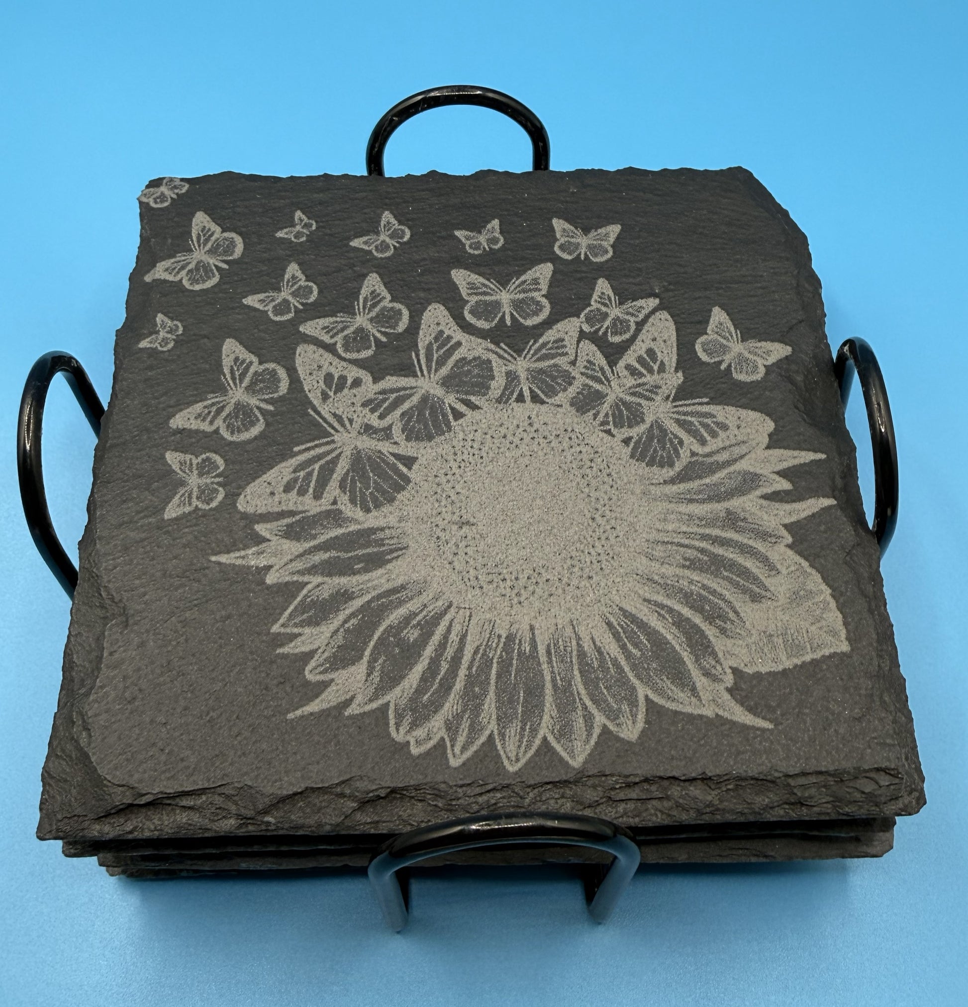 Custom Slate Coaster Set of 4. Holder included